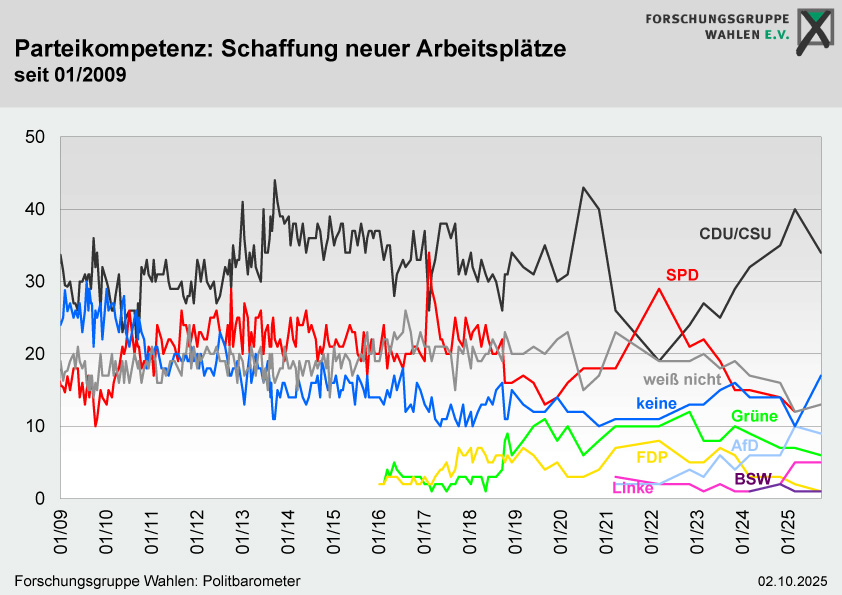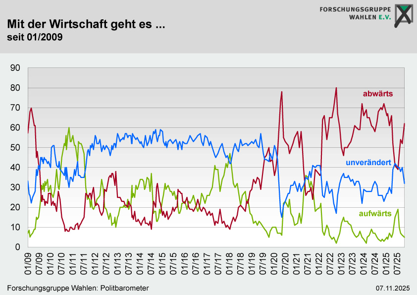 Langzeitentwicklung wichtiger Trends aus dem Politbarometer zu wirtschaftlichen Themen