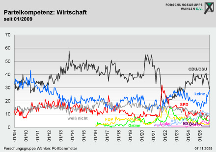 Die Daten können als xlsx-Tabellen runtergeladen werden. Sofern Sie diese Daten nutzen, bitten wir um korrekte Zitierung als "Forschungsgruppe Wahlen: Politbarometer" mit der entsprechenden Angabe zum Erhebungszeitraum.